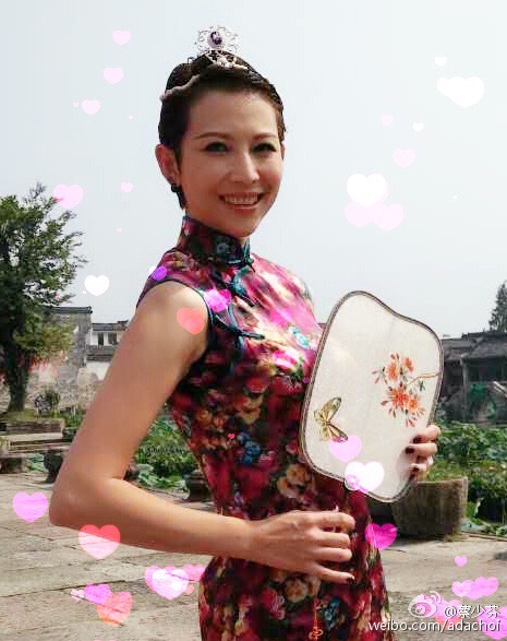 照片中,蔡少芬的两个女儿穿着裙子戴着冠冕头饰,十分乖巧可爱,大女儿抚脸偏头,眉眼神情和妈妈十分相似,小女儿还有些婴儿肥,咧嘴微笑萌化众人心,而第三张照片娘娘霸气亮相,身穿紫红旗袍,头戴冠冕,手拿扇子,对着镜头微笑。