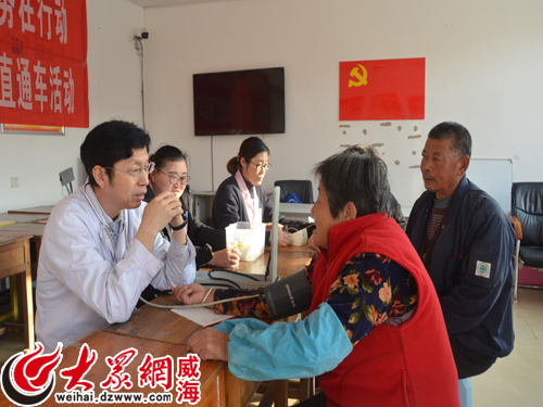 大众网威海11月27日讯 (通讯员 朱霖 记者 钱昱昕) 11月24日上午,文登区妇幼保健院组织部分医务工作者走进文登区宋村镇渠格庄村,为村民送医、送药、送健康,打通服务群众“最后一公里”,为村民送去了贴心、便捷、周到的医疗服务。