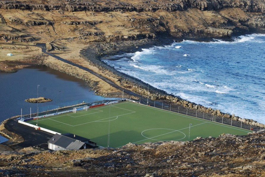 伊迪体育场座落于法罗群岛伊斯特洛伊岛西北端的艾奥伊村(Ei?i)。“Ei?i”在法罗语中意为“地峡”。这个村子只有669名居民,村子的中央建有一座大型石结构教堂,年代可追溯到1881年。建造这座教堂是为了纪念建村100周年。