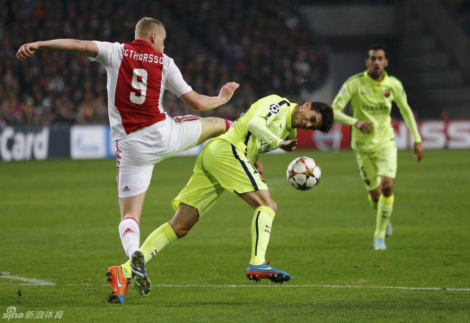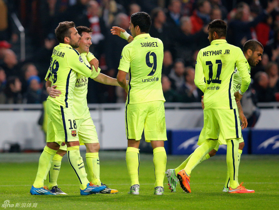 11月6日,阿姆斯特丹,欧冠小组赛F组开始第4轮角逐,巴塞罗那客场2比0胜阿贾克斯,与巴黎圣日耳曼携手出线。梅西包办2球,欧冠71球追平劳尔纪录,阿贾克斯替补米利克中柱,中卫费尔特曼两黄下场。【欧冠专题】