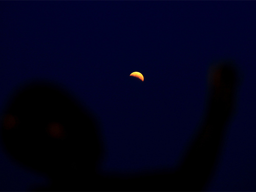 10月8日,为记录今年我国唯一能观测到的月全食现象,大众网威海拍客赵学军下班后就赶到威海公园等待记录月全食,17点14左右初亏开始,20.35复圆,其间有一个多小时可以观测罕见“红月亮”。