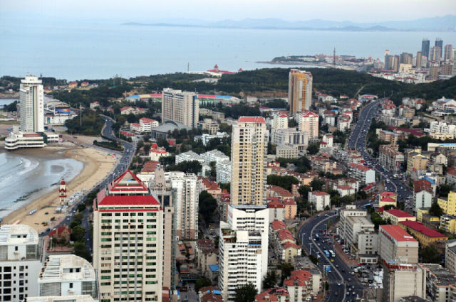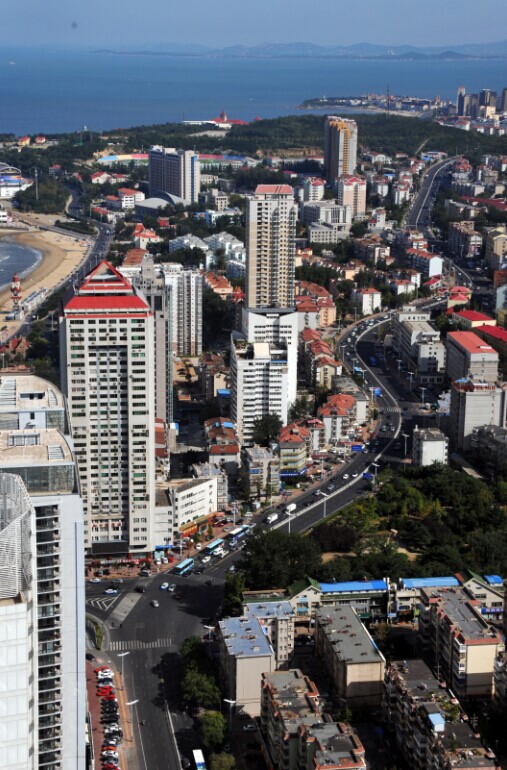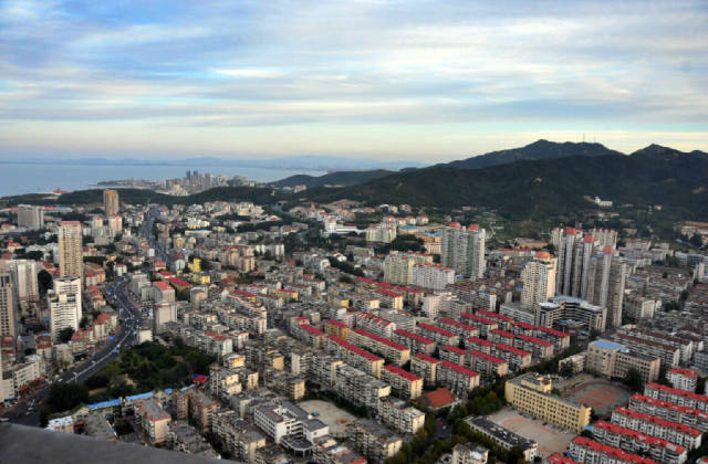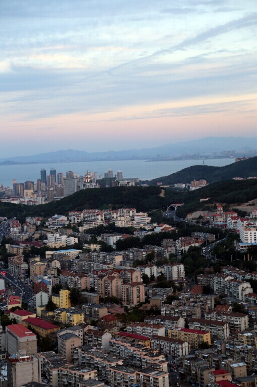 从高处向下望去,无限开阔,依山傍海的烟台小城让人觉得十分安宁。