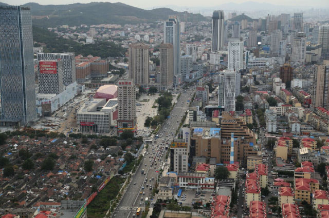 晴朗的天空下,俯瞰烟台,别有一番风味。