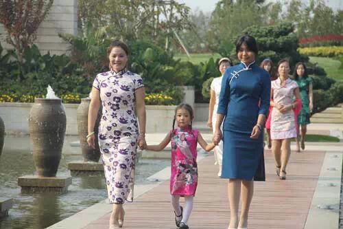 当日的游园活动中,旗袍爱好者们在大溪谷国际婚礼博览园的主要景观紫藤峡谷、芝樱花田、爱情文化主题公园、鹊桥、水晶教堂、龙湖、凤湖等地都留下了身着旗袍的风采。在大溪谷文化中庭,身穿旗袍的爱好者们进行了以“秋”为主题的才艺展示,歌曲,吟诗、舞蹈,水墨书法等,在中国旗袍会会歌《风华媛梦》韵味悠长的乐曲声中,袅袅婷婷,款款走台,演绎出万种风情!本次活动以弘扬中国旗袍文化,显示中国女性典雅气质为主题,丰富多彩的活动打造了一场文化视觉盛宴。